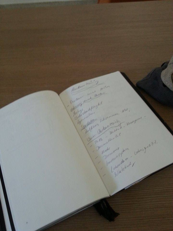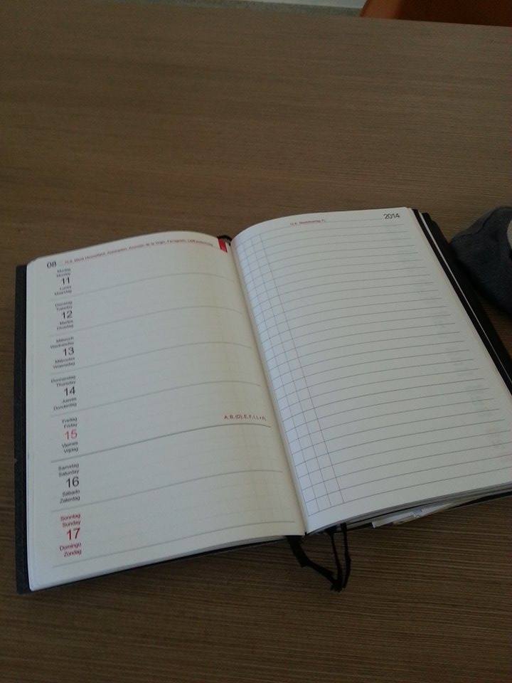Termine habe ich grundsätzlich in meinem X17 und in meinem Wochenplaner in groß an der Türe stehen. Sind besondere Termine, schreibe ich mir die Fragen / Anmerkungen in mein Notizheft von X17.