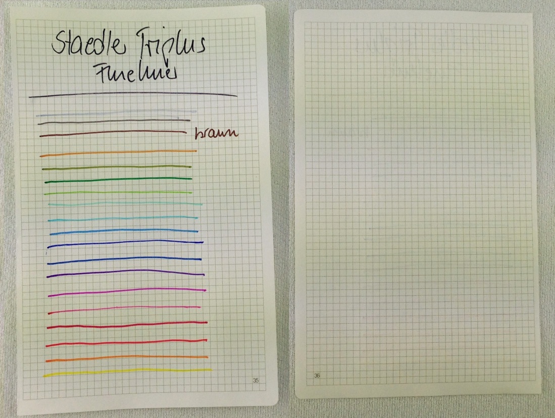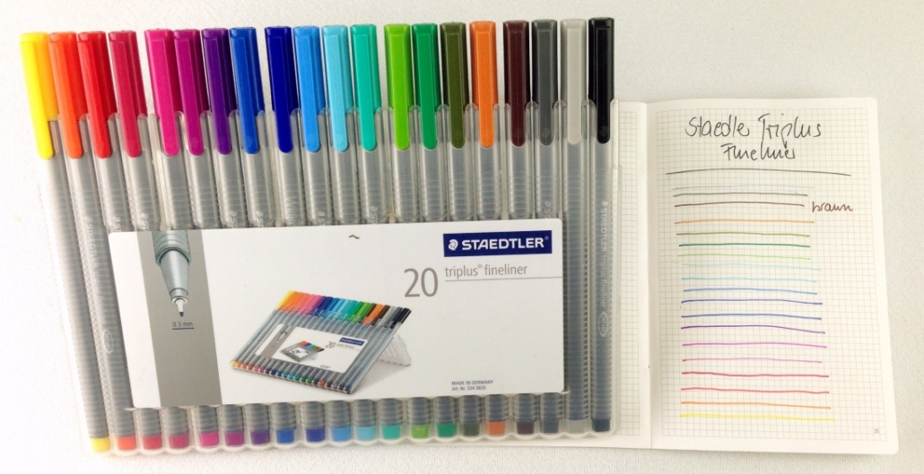 Simone de Saree hat uns freundlicherweise darauf hingewiesen, das sich die Staedtler-Triplus Fineliner sehr gut mit dem Papier für A6 und A7 vertragen. Wer also nicht mit Tinte schreiben / notieren muss, der kann auf die Staedtler-Triplus Fineliner zurückgreifen.