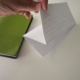 - Das Papier wird durchs Halte-Elastix geknickt.
