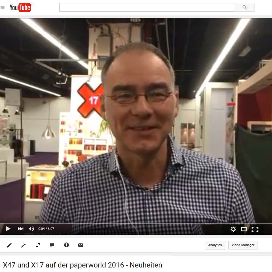 Hier der Direkt-Link zum Video: Vorstellung der Neuheiten von X47 und X17 auf der paperworld.