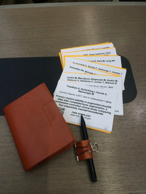Ich nutze diese wirklich tolle Instrument in genau dem zugesandten Format (A7) da es in jede Jackentasche passt (bei mir sehr oft das Jacket). Es ist handlich, einfach und funktionell, und dient mir sehr gut als Aufbewahrung unserer „Studien-Karten“. Diese bedrucke ich mit Schlüsselinfos zu medizinischen Studien (Autoren, Titel, Publikation + Jahr, DOI, Website, QR-Code zum Download und auf der Rückseite eine sehr kurze Zusammenfassung), die ich dann unseren Kunden je nach Interessenlage übergebe.