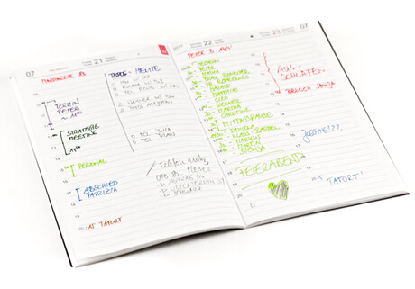 Ein Tageskalender oder auch Tagesplaner ist für diejenigen gedacht, die viele Termine und Aufgaben an einem Tag bewältigen müssen. Wer mehrere Termine pro Tag hat, nebenbei noch diverse Aufgaben erledigen muss und sich gerne mit Stift und Papier organisiert, der nutzt am besten einen Tageskalender.