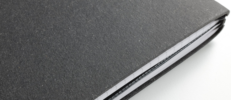 Nachdem ich die Folie entfernt habe, fällt mir ein angenehmer Lederduft auf. Dies liegt daran, dass das verwendete Material, Lefa, aus Lederfasern besteht. Dieses fühlt sich gut an und ist recht weich, macht aber einen soliden Eindruck. Die Mappe bietet eine gewisse Elastizität. Beim ersten Durchblättern stellt sich ein gewisser Wow-Effekt ein: Die Mappe dürfte wirklich einiges können. Es bestätigt sich mir, dass die A4+ Projektmappe tatsächlich für zahlreiche und auch für umfangreiche Verwendungszwecke geeignet ist. Doch hierzu an späterer Stelle mehr. Der Bürokrat – Magazin für Schreibkultur