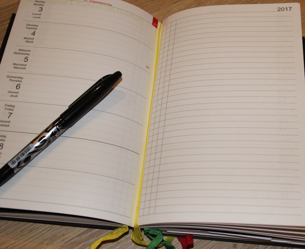 Nach dem für passenden Kalender/Notizbuch-System habe ich lange gesucht und etliche Varianten ausprobiert. Dabei habe ich zu meiner eigenen Überraschung feststellen müssen, dass digitale Versionen so gar nichts für mich ist. Ich dachte immer, besonders internetaffin zu sein; aber wenn es um Termine und Notizen geht, muss ich einfach ganz Oldschool von Hand auf Papier schreiben. So kann ich besser strukturieren und sortieren, ohne mich einem von außen vorgegebenen System unterwerfen zu müssen. kerstin-scheuer.de