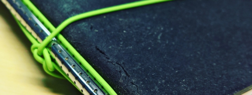 Unsere Kundin Anna W. nutzt seit zwei Jahren einen X17 A6 (Lefa, graphit unbeschichtet) mit insgesamt drei Einlagen. Vorne ein Notizheft und die beiden Jahreshälften dahinter. Eine Dokumentenhülle für kleine Zettel und Fotos sind natürlich auch dabei. Passend dazu werden die Hefte mit quitschgrünen Elastix eingehängt. Für Termine wird der Lamy Bleistift gezückt, Notizen schreibt Anna mit dem Füller.
