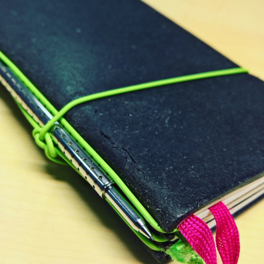 Unsere Kundin Anna W. nutzt seit zwei Jahren einen X17 A6 (Lefa, graphit unbeschichtet) mit insgesamt drei Einlagen. Vorne ein Notizheft und die beiden Jahreshälften dahinter. Eine Dokumentenhülle für kleine Zettel und Fotos sind natürlich auch dabei. Passend dazu werden die Hefte mit quitschgrünen Elastix eingehängt. Für Termine wird der Lamy Bleistift gezückt, Notizen schreibt Anna mit dem Füller.